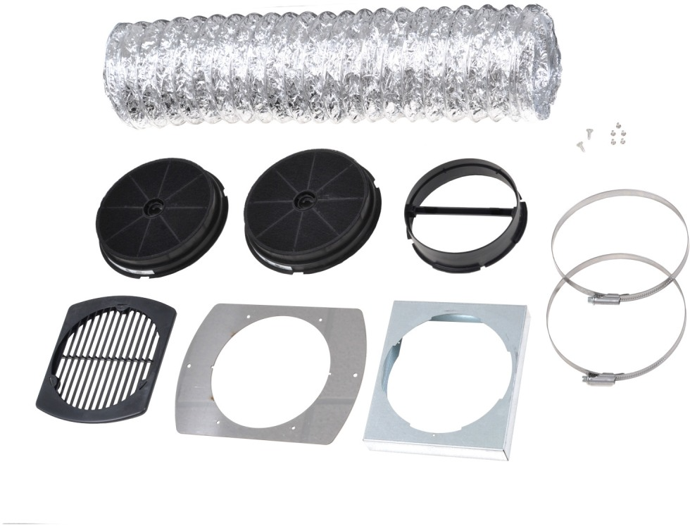 Includes 6-inch expandable duct, charcoal filters, tightening ring, snap-in flange, plastic grid, flange support bracket & grid support bracket