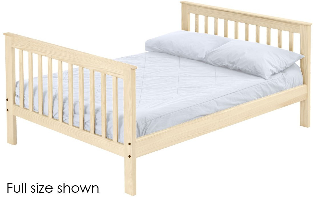 Options include extra-long for big kids and a taller version to allow 8” more headroom under the bed for comfortable seating when you add the upper bed.