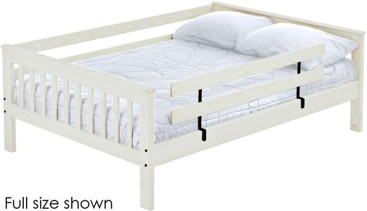 A full length rear guardrail and a removable front guardrail are included. Options include extra-long for big kids.