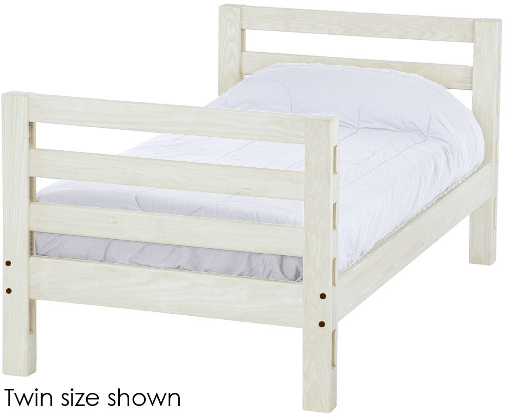 Options include extra-long for big kids and a taller version to allow 8" more headroom under the bed for comfortable seating when you add the upper bed.