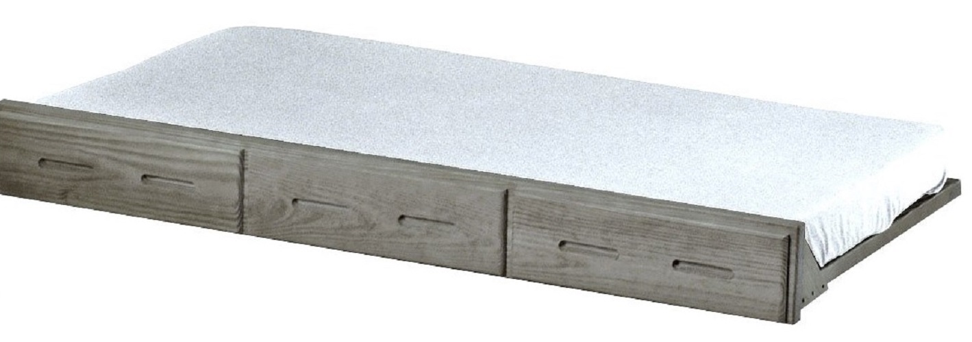 The trundle bed rolls out easily on 6 casters. You can use it under any CD bed as an extra hidden bed. Requires the Trundle Mattress. Regular mattresses will not fit.