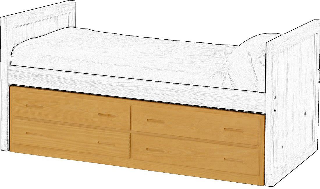 Full length under bed drawer unit. Suits Captain bed models only, and you can place one on each side of all of those beds. Choose regular length for twin or full beds. Choose extra-long for queen, king and extra-long twin or full models. Drawer boxes feature dovetailed corner joints. Drawer bottoms are secured in a groove in the solid wood drawer box, so the bottom will never fall out of your CD Furniture drawer.