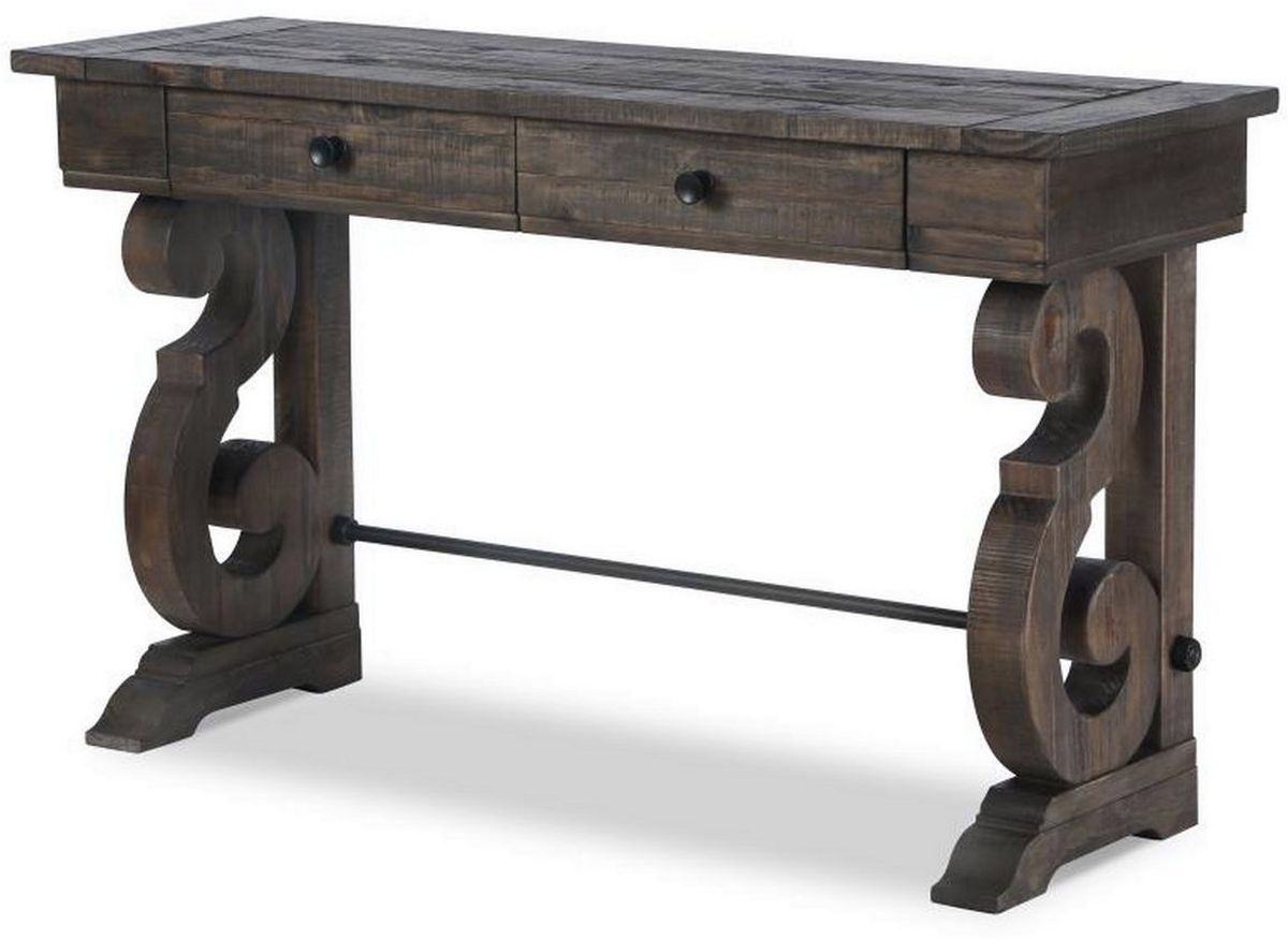 Old World charm abounds in the Bellamy table collection. Gracious S-curved carved bases support overlaid solid pine tops finished Peppercorn. Matte black with pewter highlights metal stretchers and hardware create the perfect accent to set the mood for stunning European influenced elegance.Read More