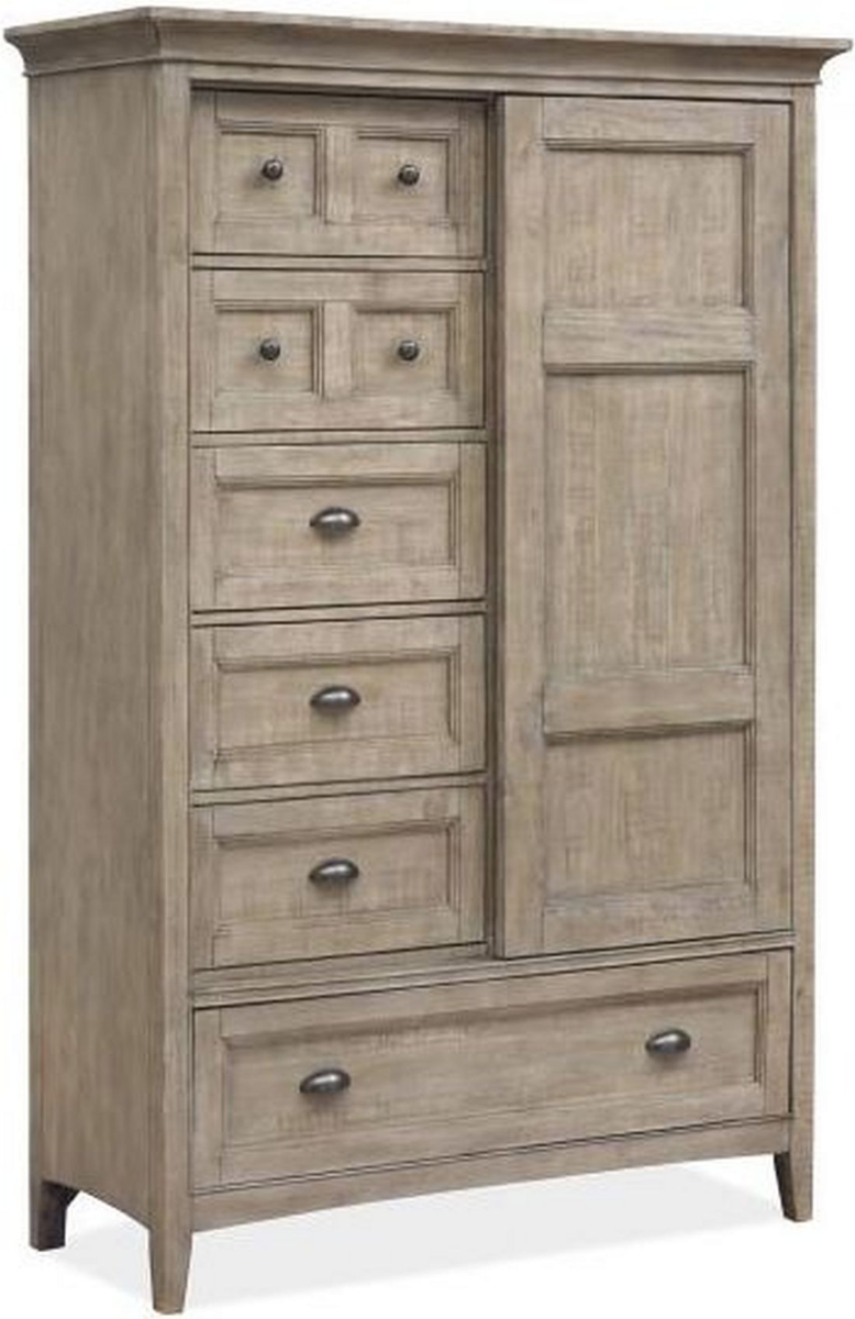 Paxton Place creates the perfect retreat. The Dovetail Gray finish accent by Weathered Bronze hardware displays the beaded, framed panel drawers over straight inspired legs handsomely. Whether in a second home, a casual city abode or in the suburbs, this collection offers plenty of drawers to stow your togs.Read More
