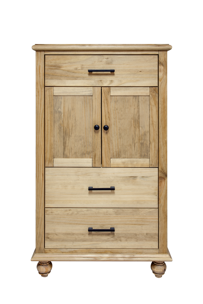 Made in Canada with solid pine construction. Comes fully assembled in over 10 stain and handle options. K-R-52/MB-SQ-113 knobs and handles come standard. Stocked in Rustic.Read More