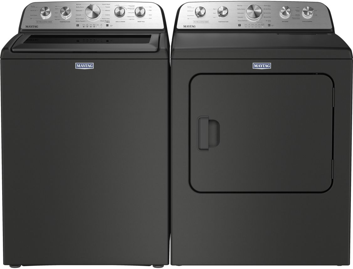 Maytag® Volcano Black Top Load laundry Pair with a 5.4 cu. ft. capacity top load washer and a 7 cu. ft. capacity gas dryer.Read More