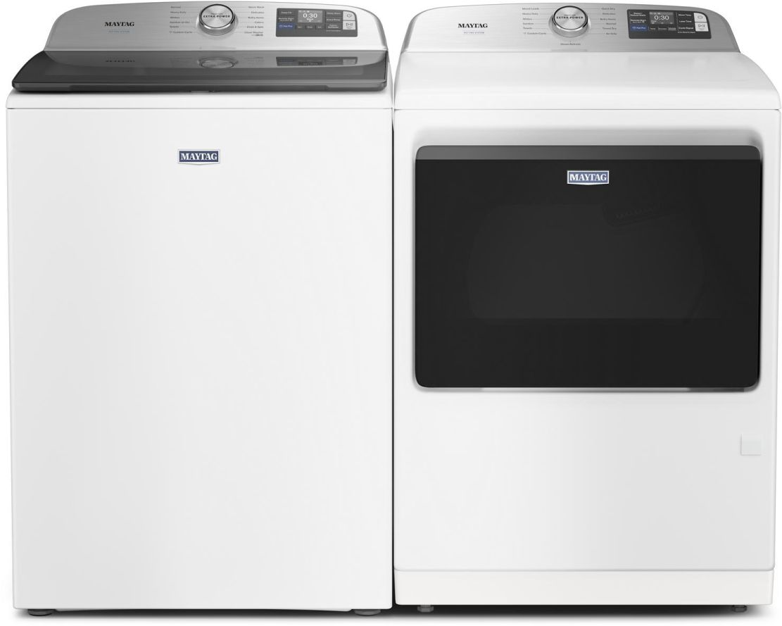 Maytag® White top load laundry pair with a 6 cu. ft. capacity top load washer and a 7.4 cu. ft capacity electric dryer.Read More