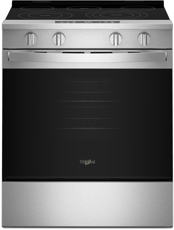 Experience the difference of Air Cooking Technology with this Whirlpool 30 inch electric range. Get crispy with our most advanced No Preheat Air Fry mode, and even results on every rack with Air Baking. Clean with just water, not harsh cleaners with WipeClean™ Coating, and unlock new cooking capabilities over time with Smart Feature Updates.Read More